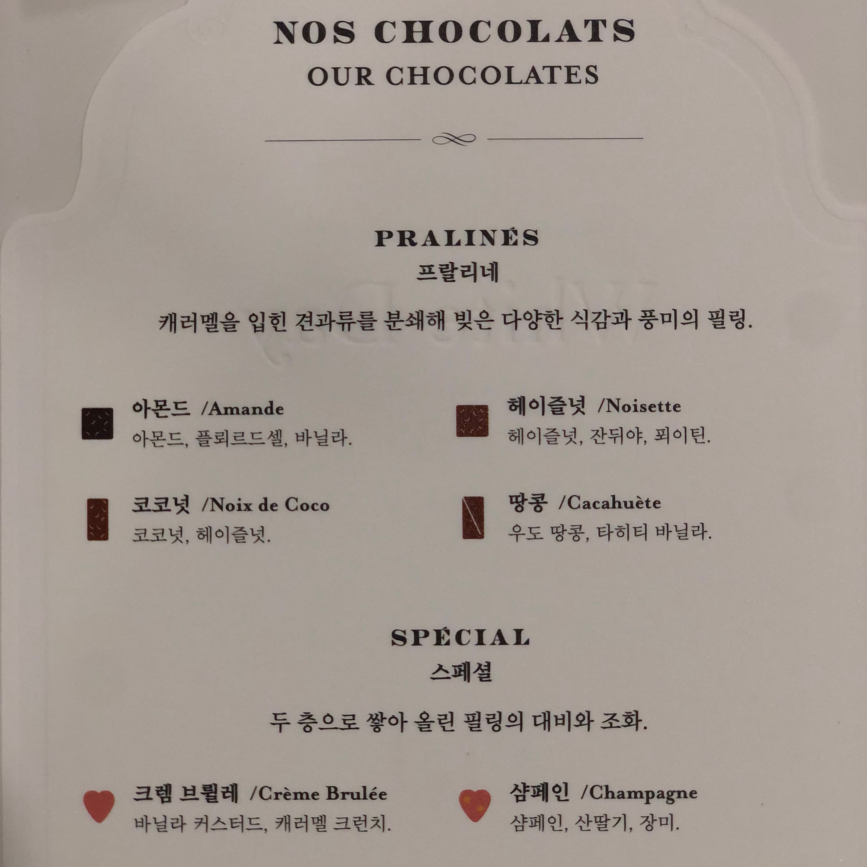 16개의 초콜릿 하나하나 어떤 맛과 재료인지