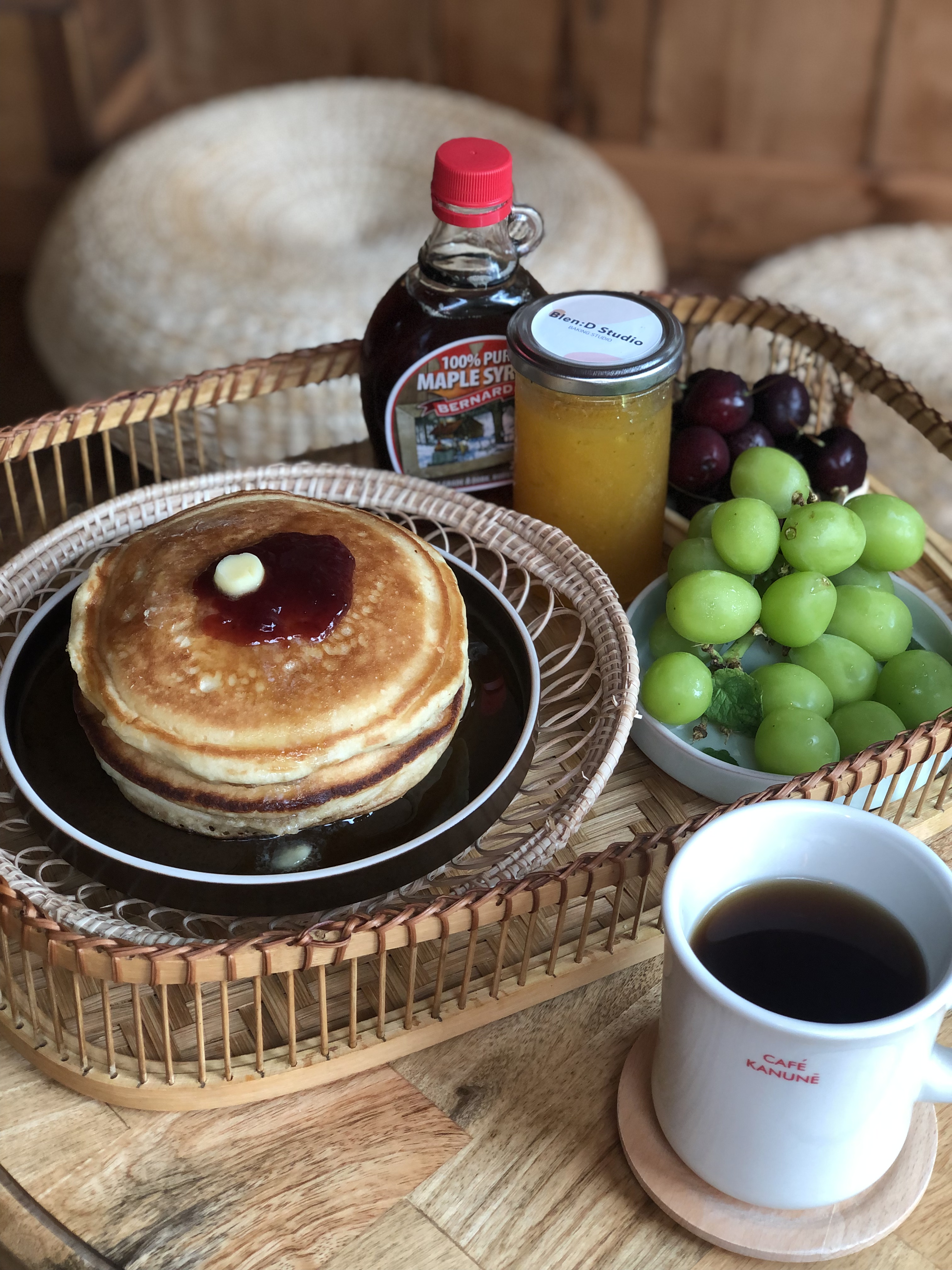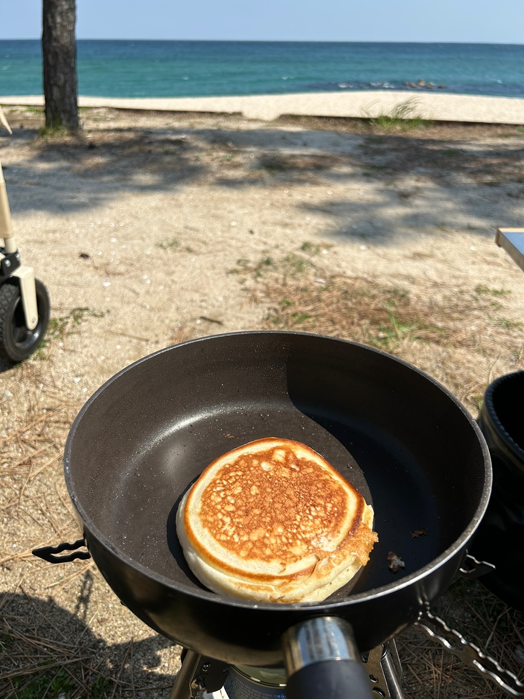 적당히 예쁜 색깔이 나오면 팬케이크 완성!